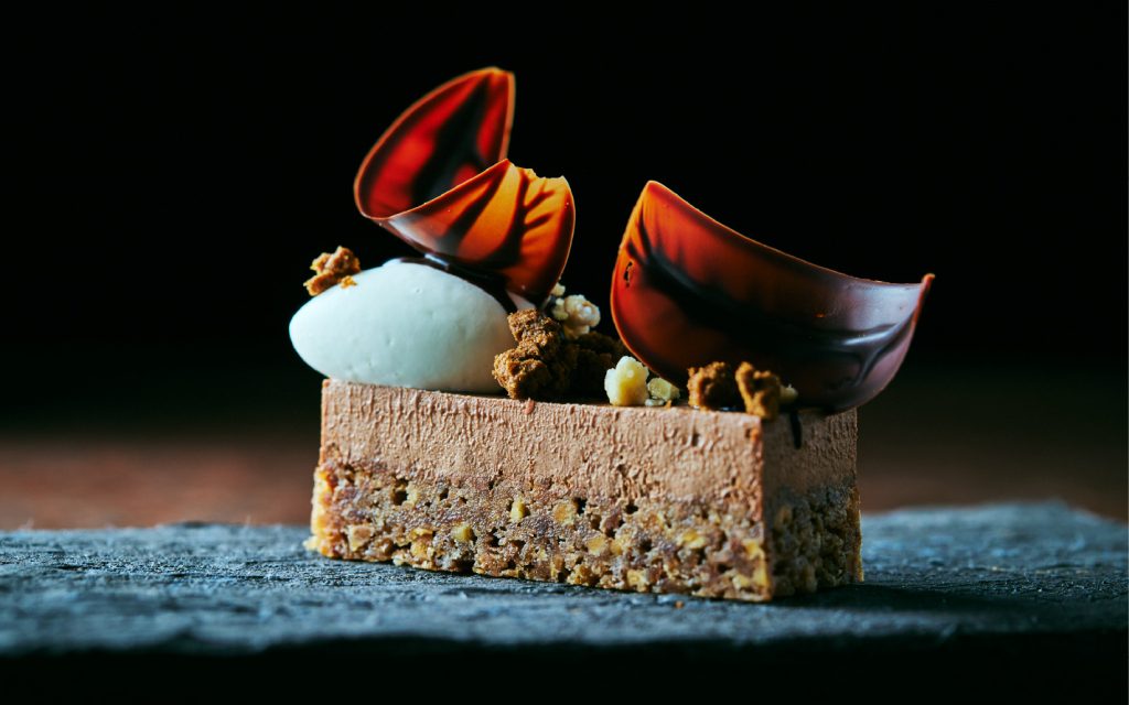 甘すぎずビターで上品なチョコレートムースとナッツ食感が楽しめるブラウニーとの2層仕立てで仕上げています。