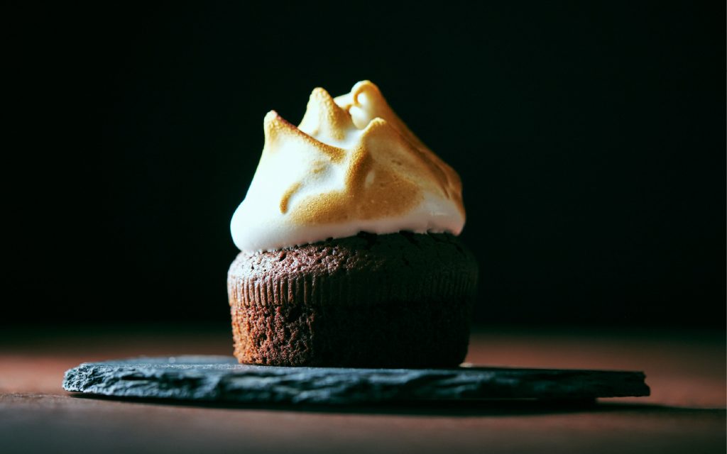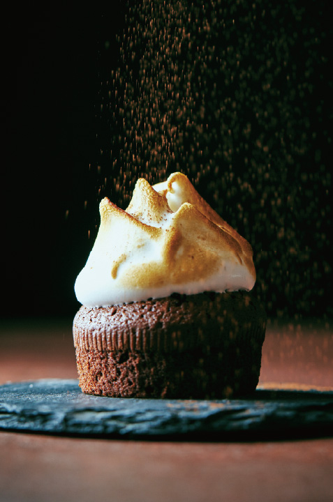 トップの部分にはお客様のアレンジでトッピングができるよう、ブラウニーをカップで表現。口どけ、香りをより感じてもらえるようダークチョコレート(カカオ分60%)を選定し焼き上げました。